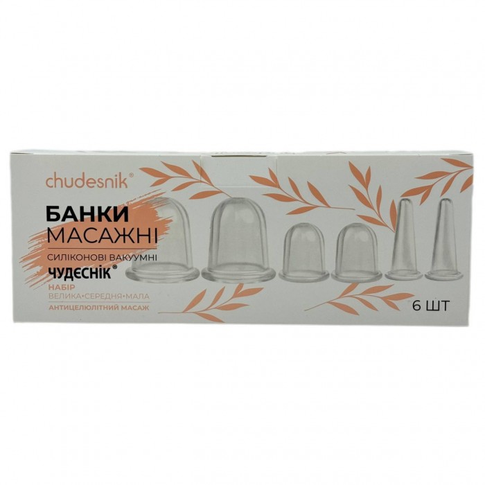 Банки вакуумні силіконові прозорі для масажу обличчя та тіла CHUDESNIK набір БМПН-6