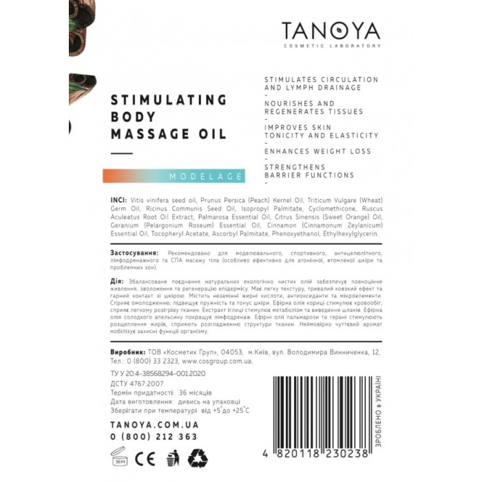 Додайте олію «Стимулювальну» для поліпшення контакту зі шкірою та посилення ковзких властивостей інших масажних засобів серії «Моделяж» від TANOYA (крему антицелюлітний та лімфодренажний).