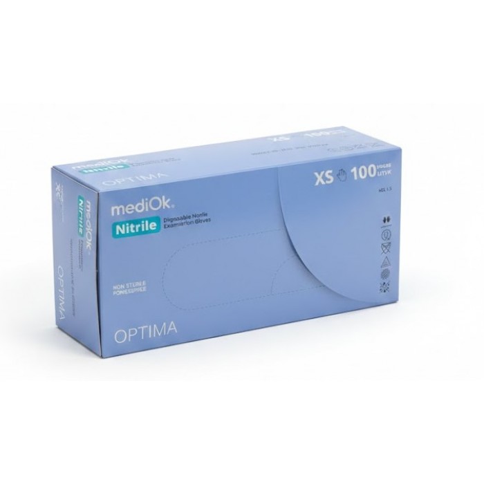 Перчатки одноразовые нитриловые без пудры голубые MediOK Optima 100 шт, 3,0 г размер XS