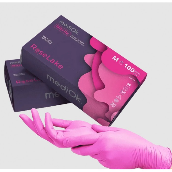 Перчатки одноразовые нитриловые без пудры ярко-розовые Mediok Rose Lake 100 шт, 3.5 грамм размер М
