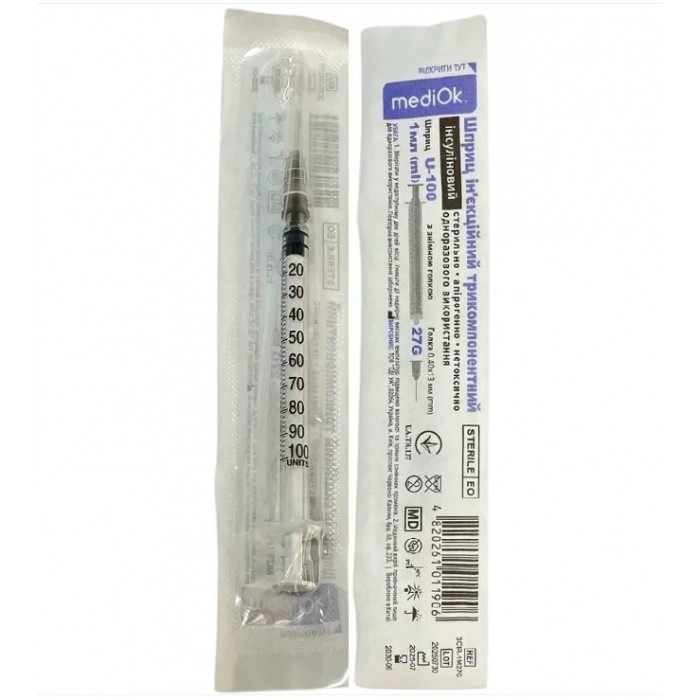 - Об’єм шприца: 1 мл;