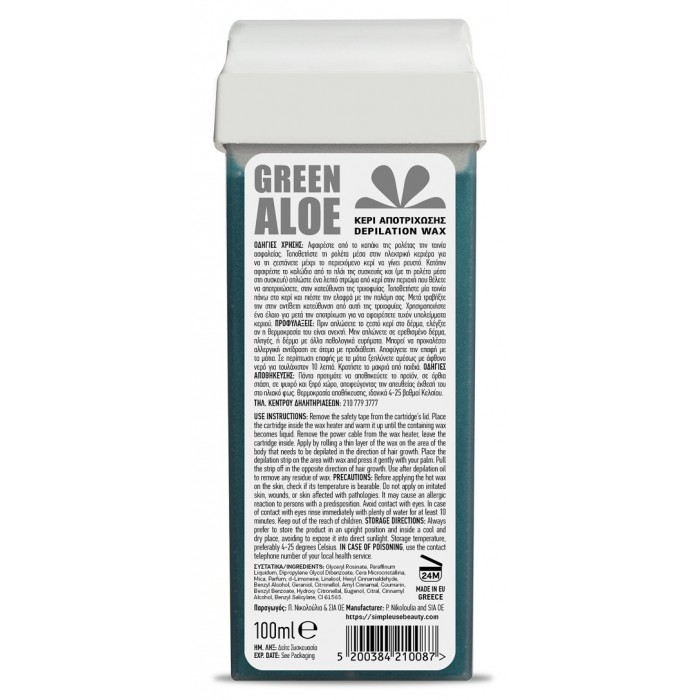 Віск в касеті для депіляції Simple Use Beauty Green Aloe (Зелене алое) 100 мл