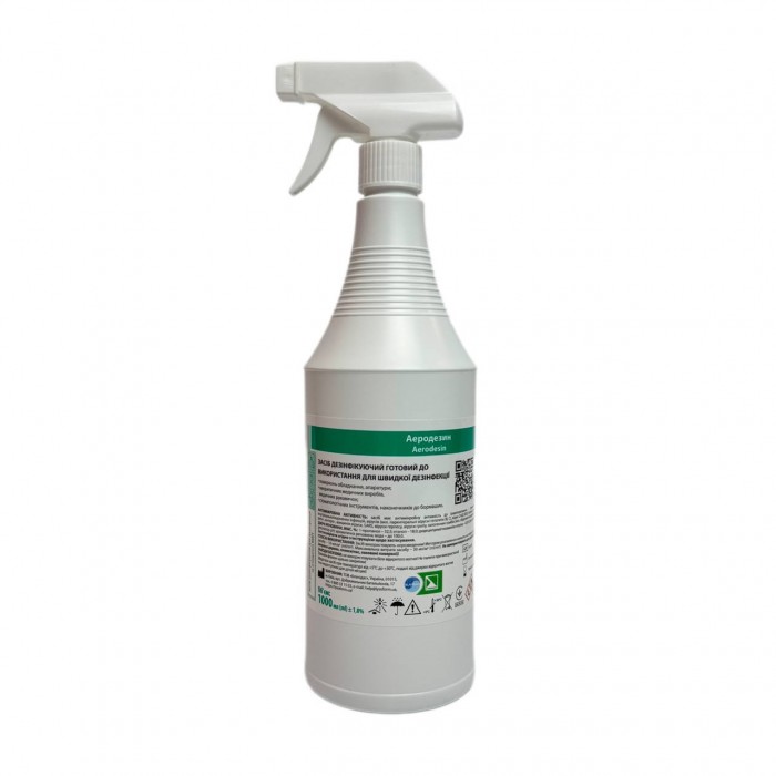 Аеродезин – це готовий засіб для екстреної дезінфекції невеликих за площею поверхонь і некритичних медичних виробів, інструментів. Засіб використовують з метою швидкої дезінфекції об’єктів всіх галузей, а також важкодоступних для обробки поверхонь приміщень, іграшок, виробів медичного призначення, стоматологічних інструментів, протезів, перукарського, манікюрного і косметологічного інструменту, ножиць, інструментів і предметів, з пластичних мас (щітки, гребінці), інструментів для нанесення татуажу, перманентного макіяжу, пірсингу, медичного інвентарю.