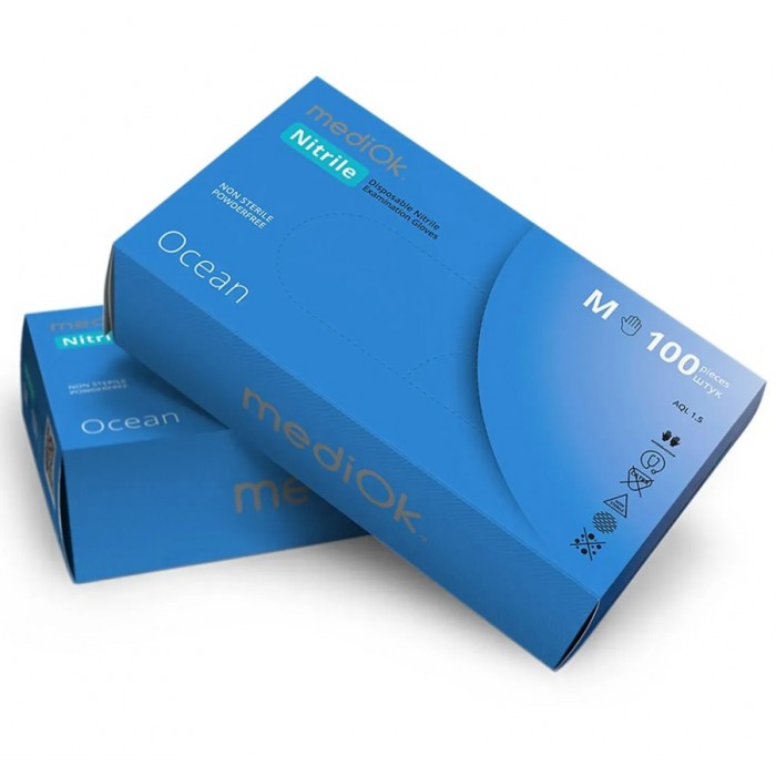 Рукавички одноразові нітрилові без пудри блакитні Ocean Mediok 100 шт, 3.5 грам розмір M