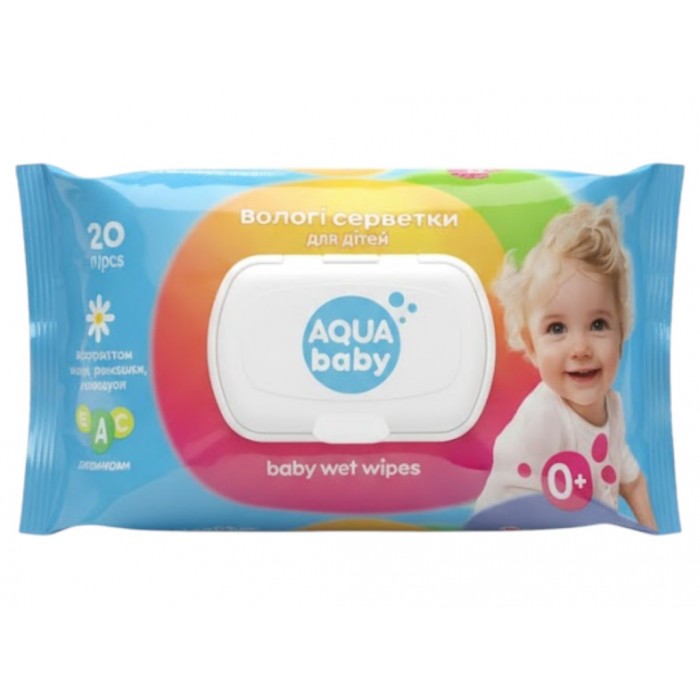 Вологі серветки в упаковці з клапаном Aqua Baby Chamomile, з екстрактом череди, календули та ромашки 120 шт